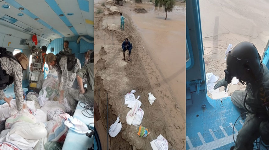 Pakistan Air Force personnel and helicopter fleet are actively engaged in providing humanitarian assistance and disaster relief support to the people stranded in flash floods affected areas of Balochistan.