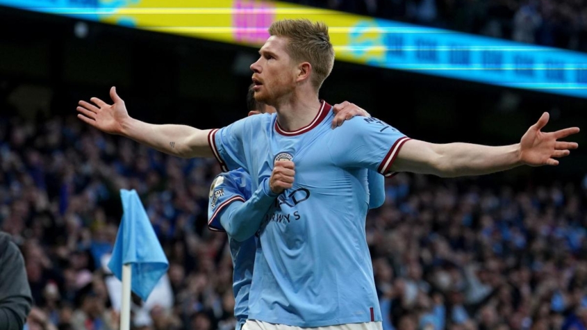 Kevin De Bruyne scored twice, while Erling Haaland set up two goals to close in on retaining their crown as English champions.