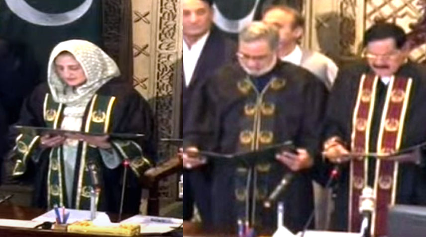 Outgoing Speaker, Mushtaq Ahmed Ghani administered the oath to newly elected speaker of provincial assembly, while the new Speaker Babar Saleem Swati administered oath to the newly elected Deputy Speaker.