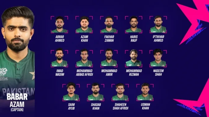 The Pakistan Cricket Board today unveiled its 15-player squad for next month’s ICC Men’s T20 World Cup 2024 in the USA and Caribbean from 1-29 June. The side will be led by Babar Azam.