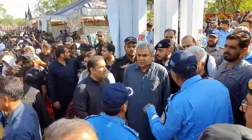 Interior Minister Mohsin Naqvi visited the main procession of 9th Muharram in Islamabad today to review security arrangements and inspect the procession route.