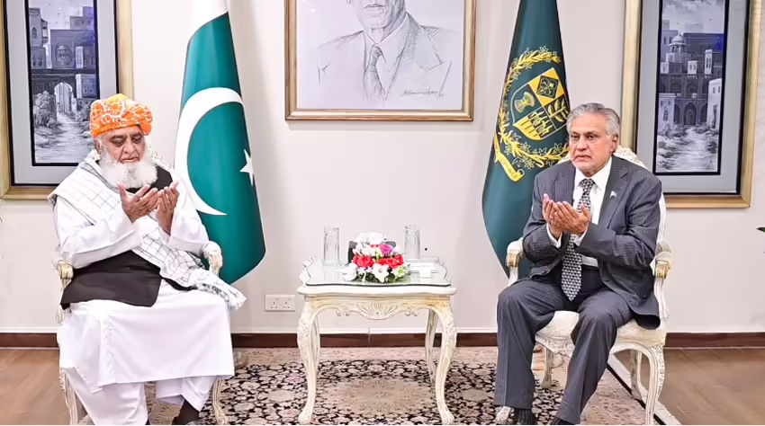 Ishaq Dar expressed his gratitude to Maulana Fazlur Rehman for taking the time to offer condolences on the loss of his elder brother.