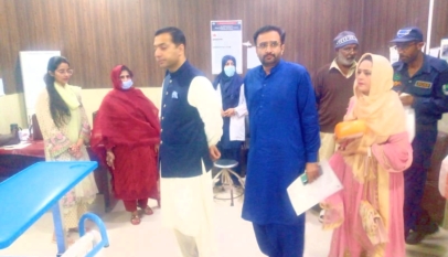 Bilawal Bhutto was accompanied by senior PPP leaders including Syed Naveed Qamar, Murtaza Wahab and Jameel Soomro.