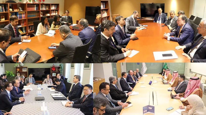 Minister for Finance, Muhammad Aurangzeb has met with the United Arab Emirates, Minister of State for Financial Affairs, Mohamed Bin Hadi Al Hussaini, Saudi Minister of Finance, Mohammed Aljadaan, Finance Minister of China, Lan Fo’an and Minister for Finance met with President Global Policy and Advocacy of the Gates Foundation, Gargee Gosh in Washington DC on the sidelines of IMF-World Bank Spring meetings.