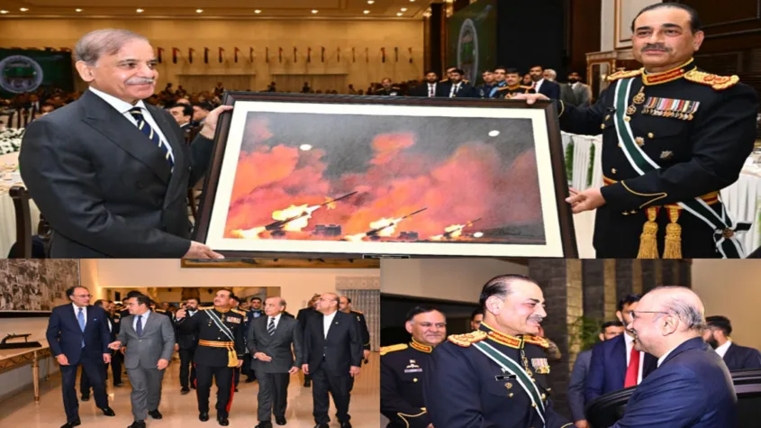 Chief of Army Staff, Field Marshal Syed Asim Munir hosted a dinner to honour the political leadership, steadfast commitment of the Armed Forces, and the indomitable spirit of the people of Pakistan demonstrated during Marka-e-Haq and Operation Bunyanum Marsoos.