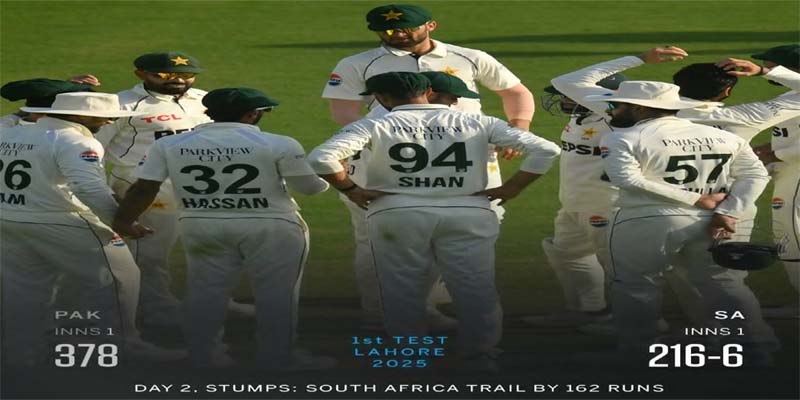 Spinners dominated the second day’s play of the first Test between Pakistan and South Africa, as the visitors are still trailing by 162 runs with four first-innings wickets in hand at the close of play at the Gaddafi Stadium in Lahore.