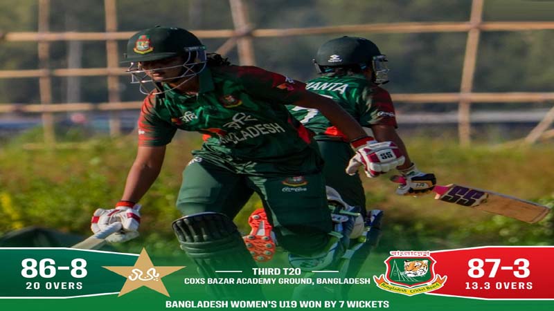 Bangladesh Women’s U19 beat Pakistan Women’s U19 by seven wickets in the third match of the five-match T20 series at the Cox’s Bazar Academy Ground on Sunday.