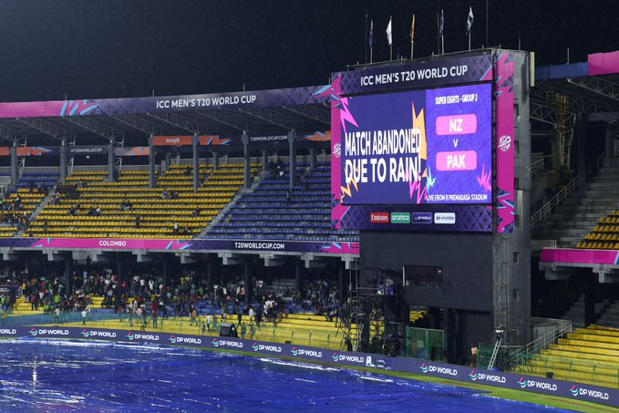 The Super Eight Group 2 clash between Pakistan and New Zealand in the 2026 T20 World Cup was abandoned due to persistent rain, with both teams awarded one point each.