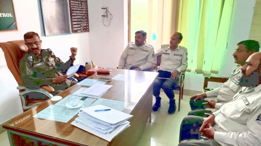 During the meeting, DSP Haider Ali Tipu instructed the officers to further improve their performance and ensure effective measures to prevent road accidents. He specifically ordered strict action against motorcyclists riding without licenses, riders without helmets, and underage drivers, emphasizing the strict enforcement of traffic laws.