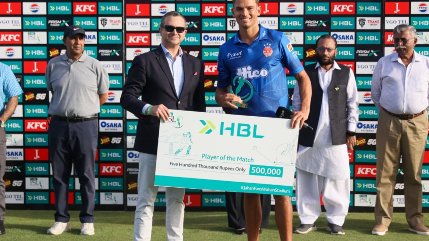 Lahore Qalandars 100 all out, 18.3 overs (Sikandar Raza 25, Haseebullah 19; Chris Green 3-19, Imad Wasim 2-13, Richard Gleeson 2-13, Shadab Khan 2-18)