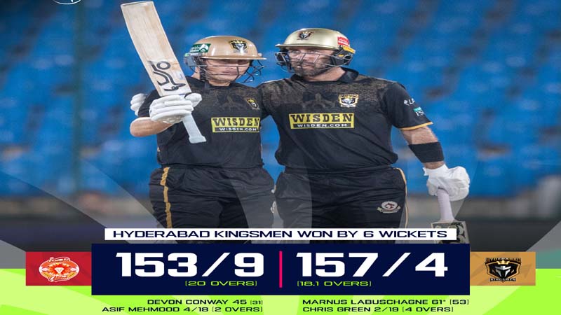 Hyderabad Kingsmen 157-4, 18.1 overs (Marnus Labuschagne 61 not out, Saim Ayub 35, Maaz Sadaqat 30, Glenn Maxwell 21 not out, Chris Green 2-19, Faheem Ashraf 2-33)