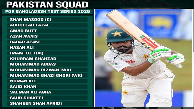 Shan Masood will continue to lead the Test side, while four uncapped players – Abdullah Fazal, Amad Butt, Azan Awais and Muhammad Ghazi Ghori are part of the squad.