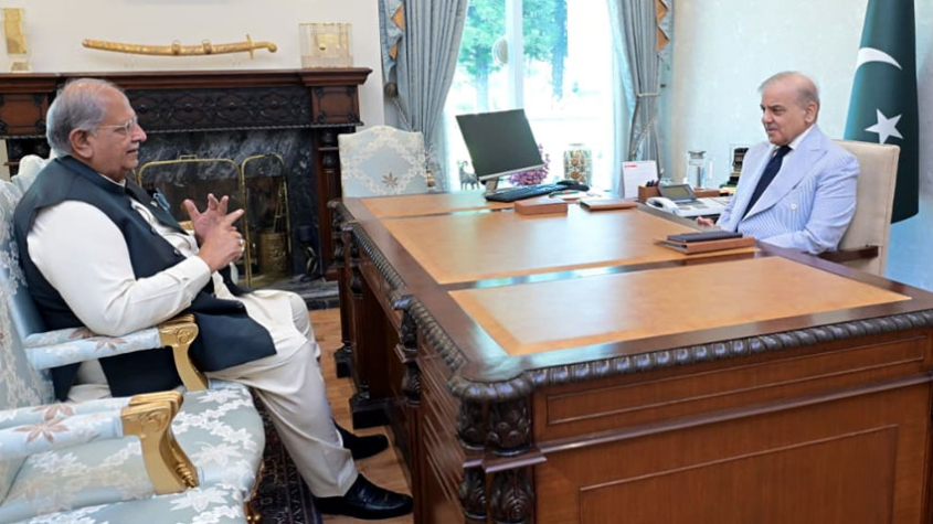 Federal Minister for Housing Mian Riaz Hussain Pirzada called on Prime Minister Muhammad Shehbaz Sharif in Islamabad today.