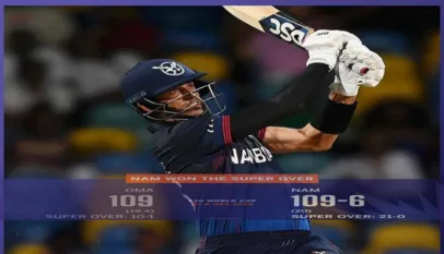 T20 World Cup 2024 : Namibia beat oman in super over