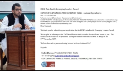 Exceptional Recognition for Pakistani Engineer: Engr. Abdul Haseeb Mansuri Receives FIDIC Asia Pacific Young Emerging Leaders Award 2023