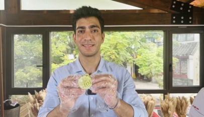 A Pakistani makes Chinese calligraphy and paintings into mooncakes